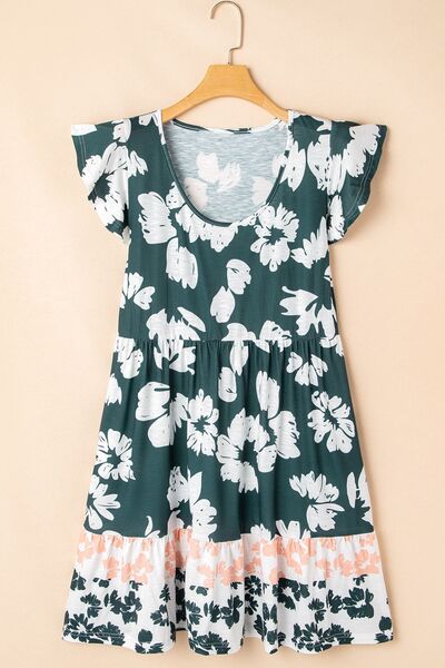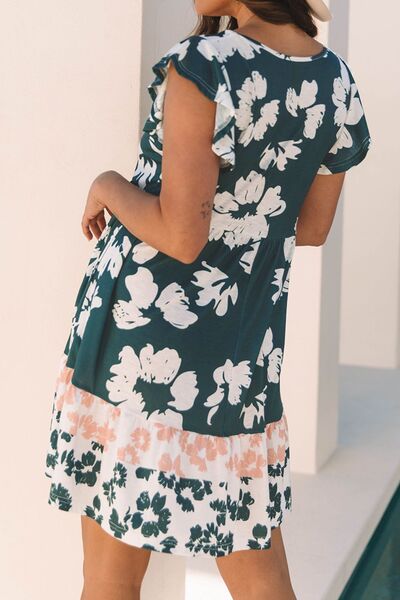 Floral Print Ruffle Sleeve Empire Waist Mini Dress