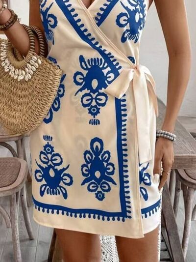 Floral Print Spaghetti Strap Wrap Mini Dress