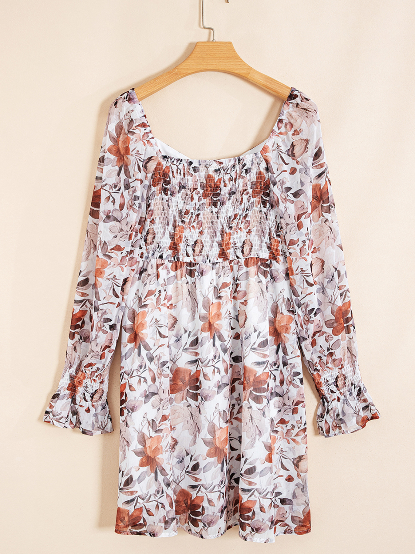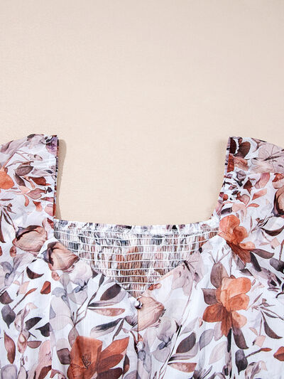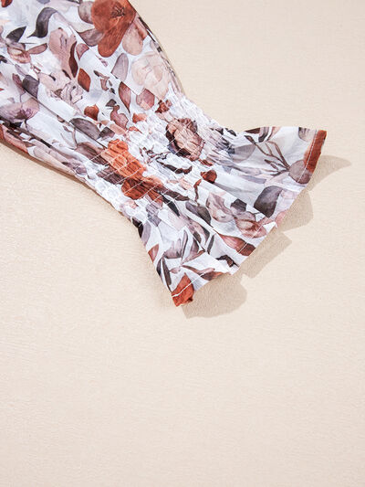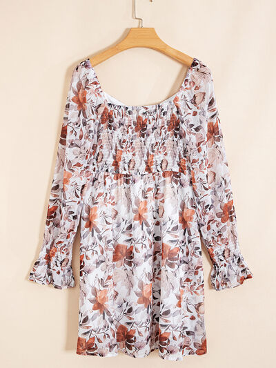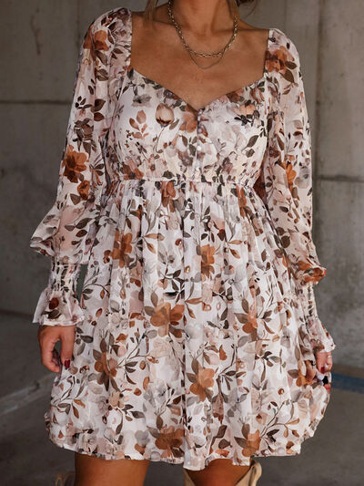 Floral Print Sweetheart Neck Long Sleeve High Waist Mini Dress