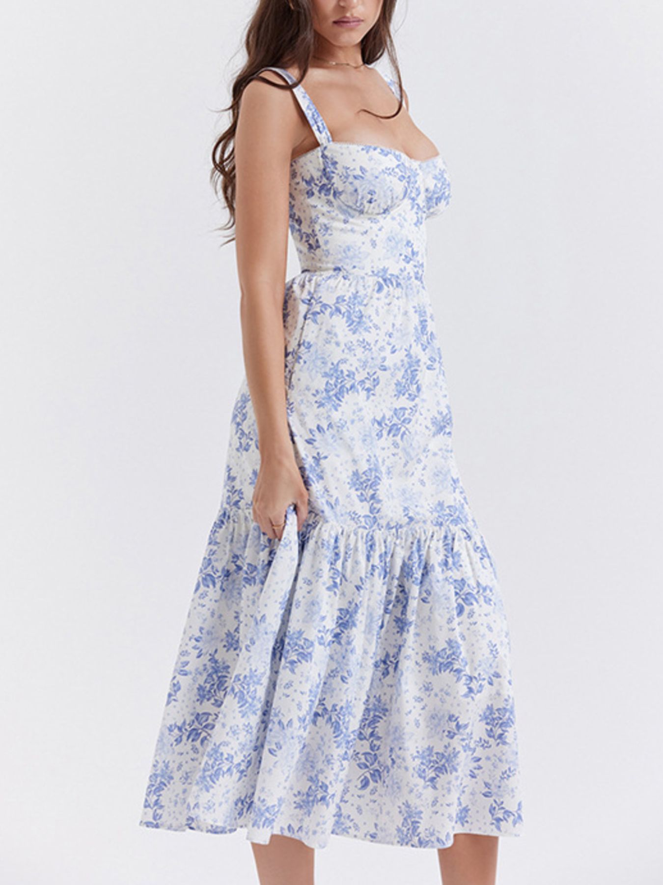 Floral Print Sweetheart Neck Midi Dress