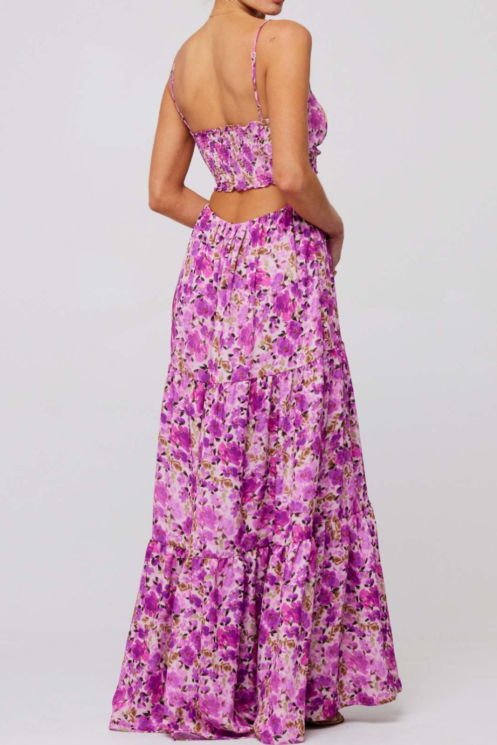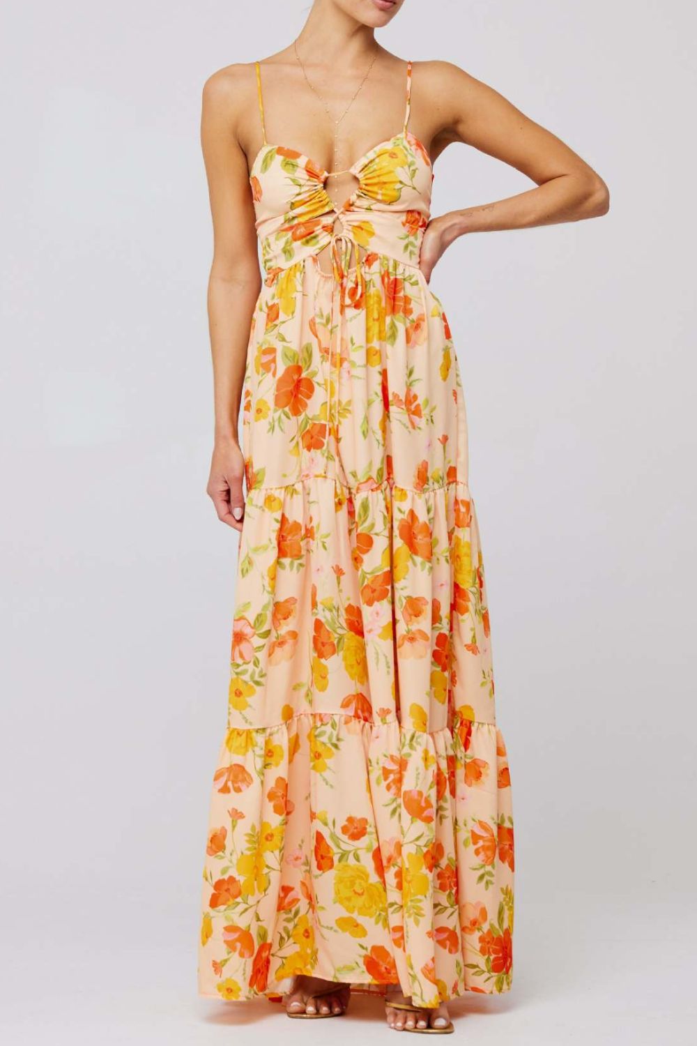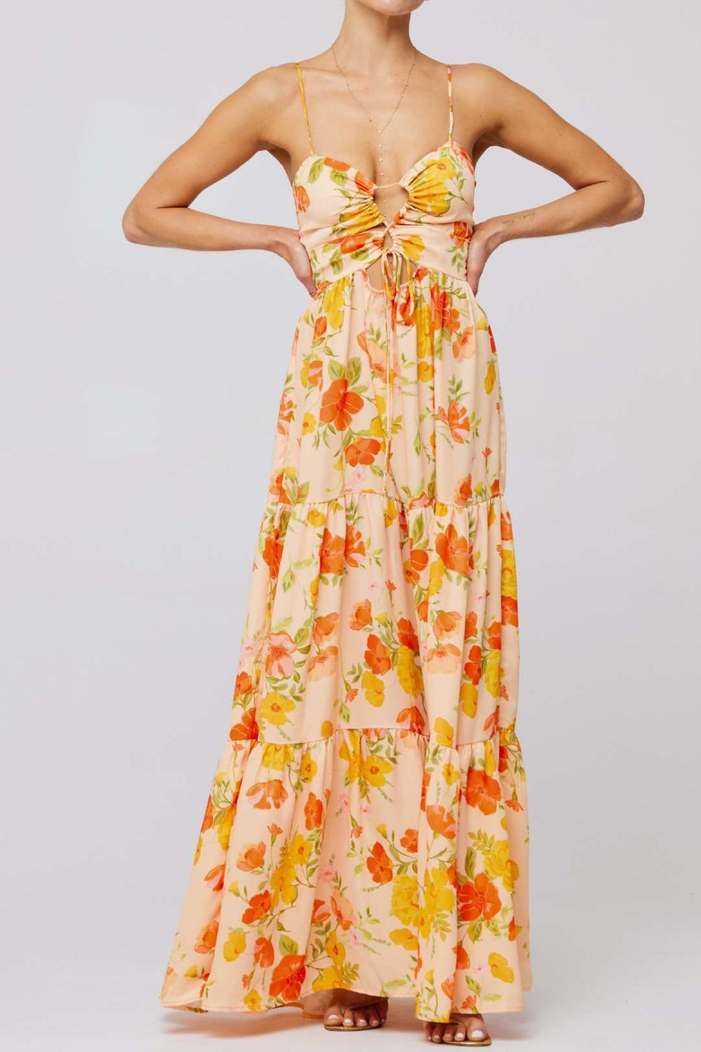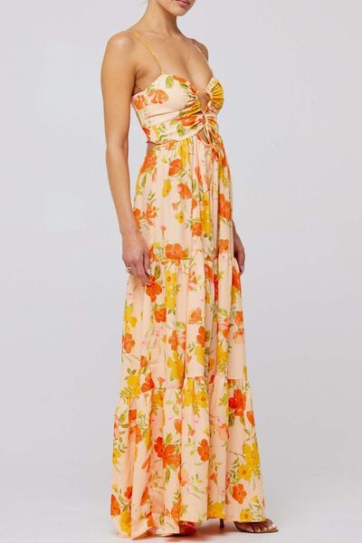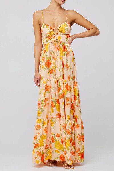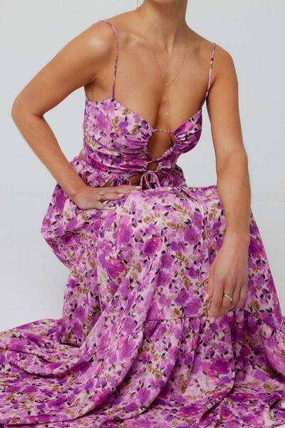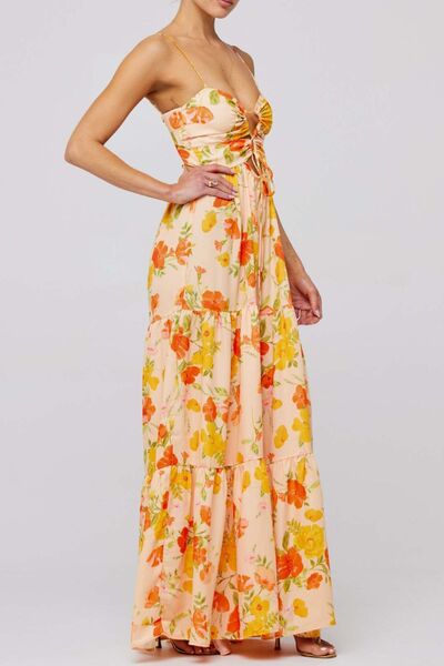 Floral Print Tie Front Tiered Maxi Dress