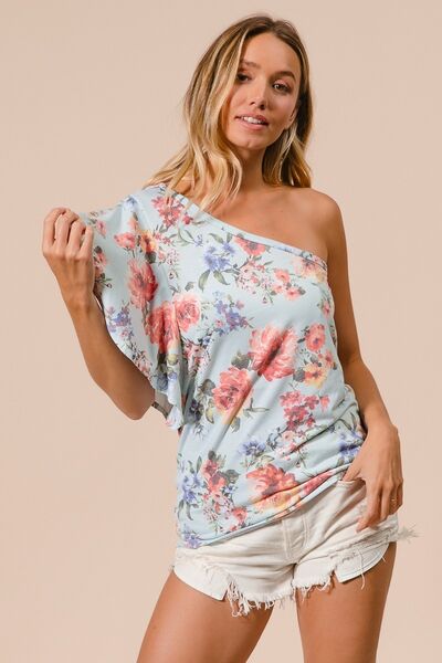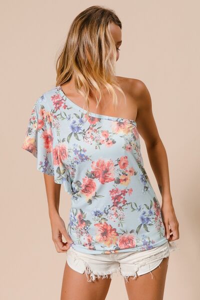 Floral Printed Jersey Knit Ruffle Sleeve Top