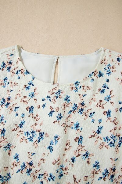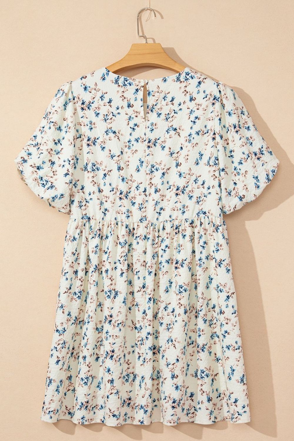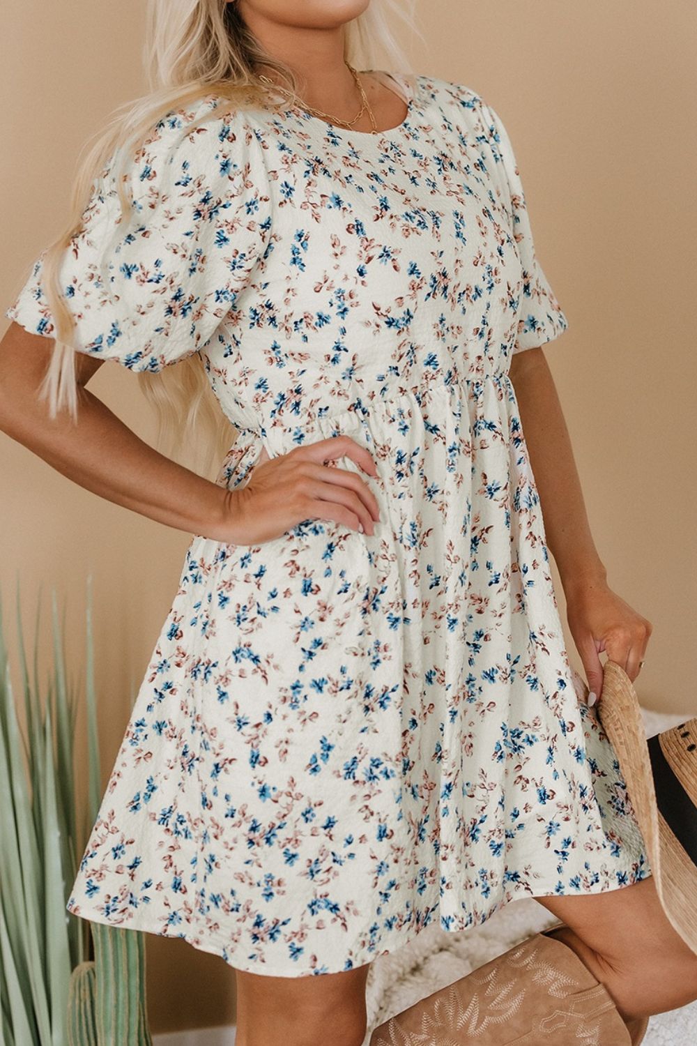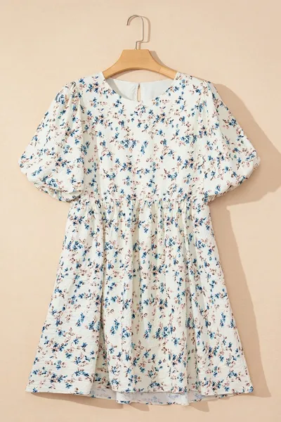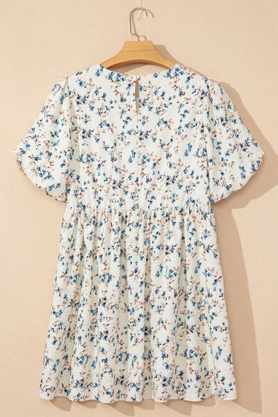 Floral Puff Short Sleeve Empire Waist Mini Dress