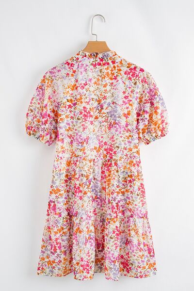Floral Puff Sleeve Notched Tiered Mini Dress