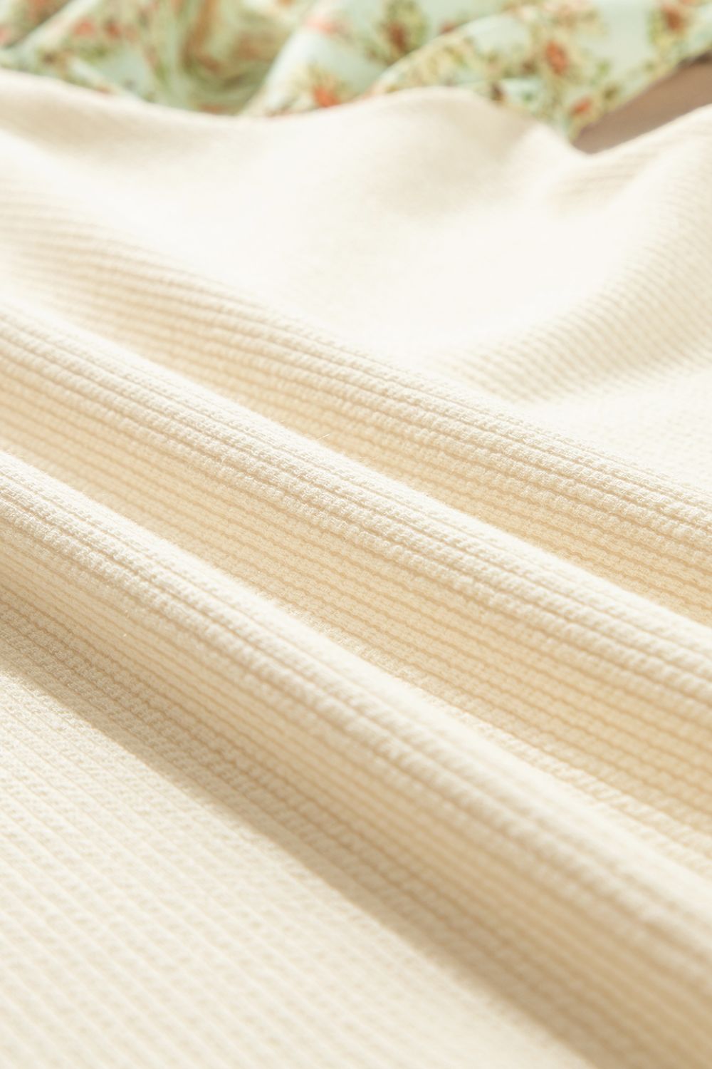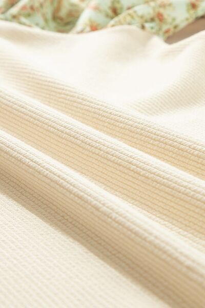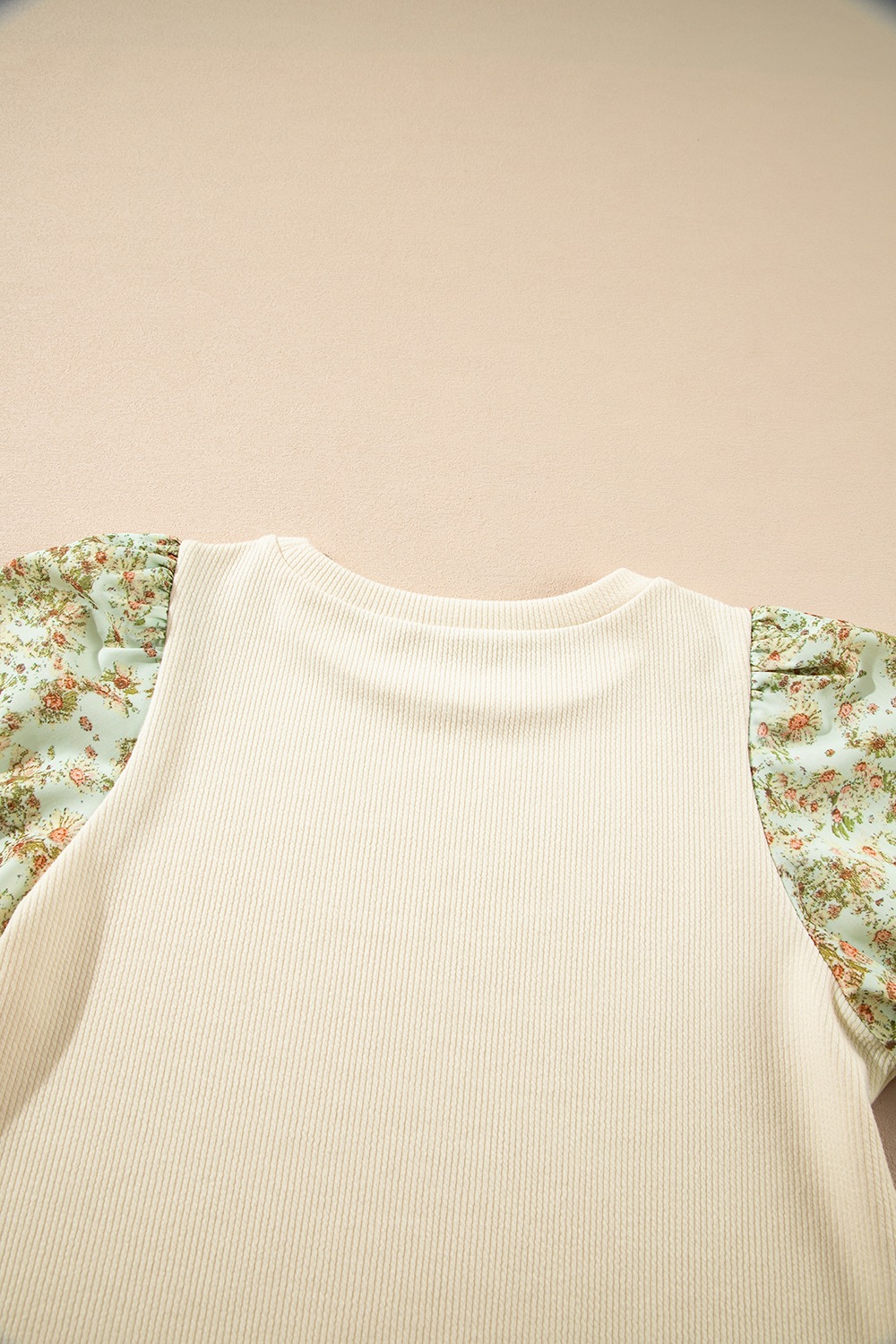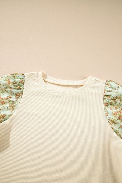 Floral Puff Sleeve Ribbed Blouse