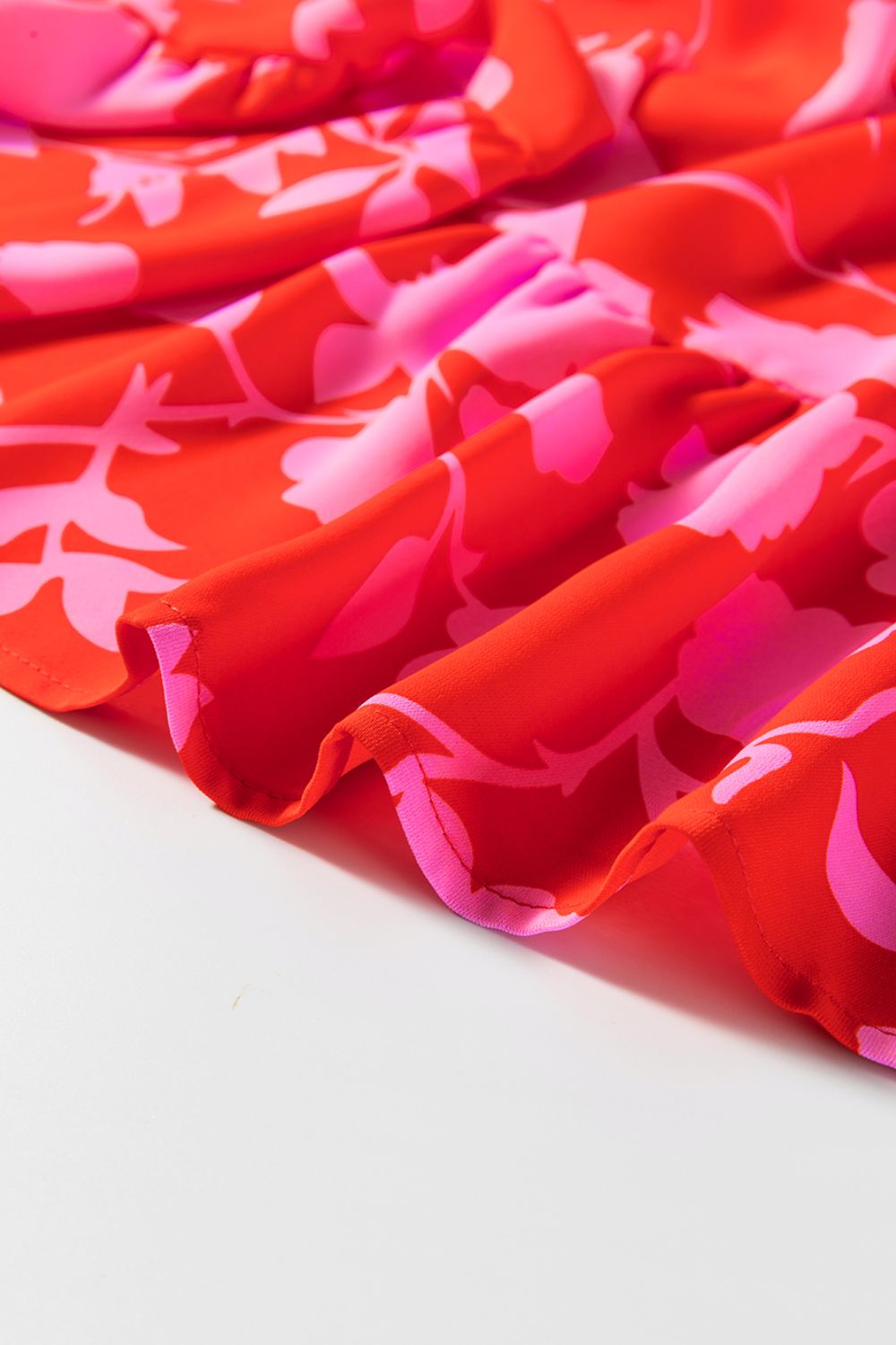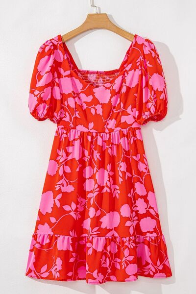 Floral Puff Sleeve Sweetheart Neck Ruffled Mini Dress