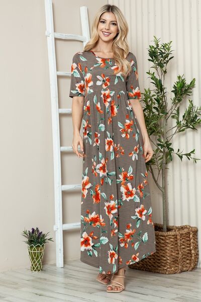 Floral Round Neck Short Sleeve Maxi Tee Dress