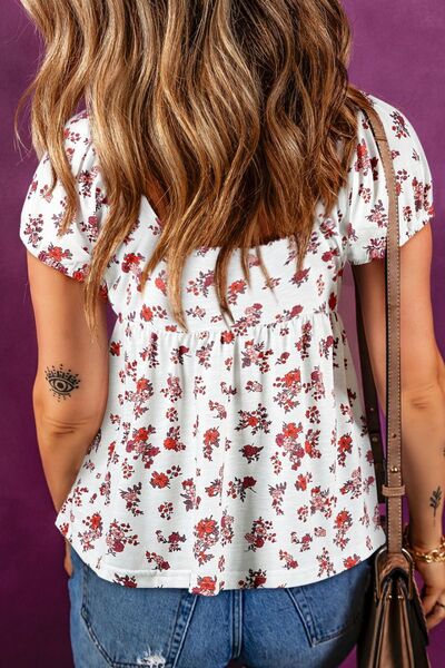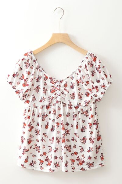 Floral Ruched Cinched Short Sleeve Blouse