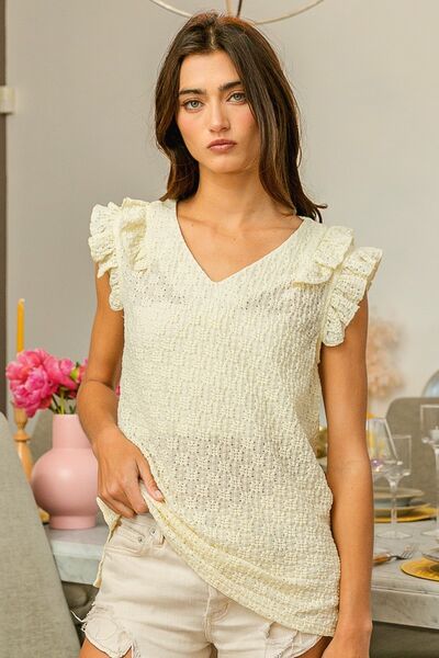 Floral Ruffled Armhole V-Neck Top