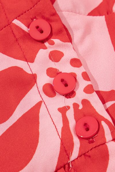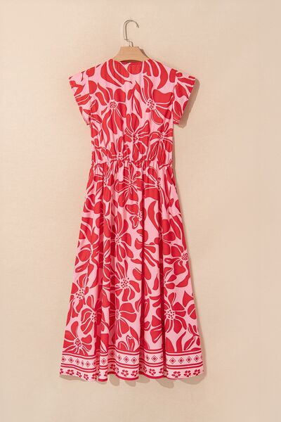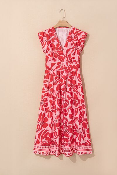 Floral Ruffled V-Neck Midi Dress with Button Front
