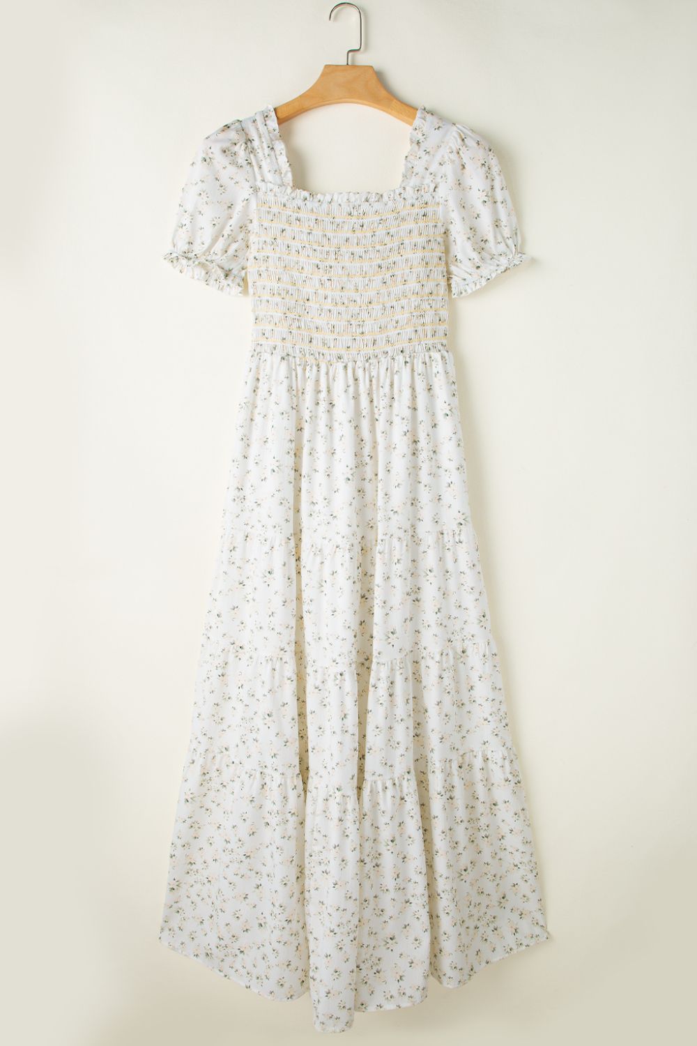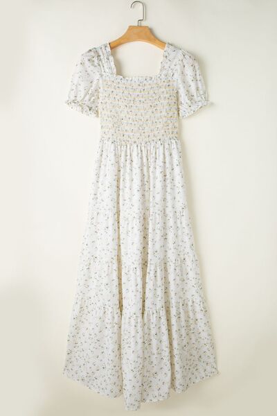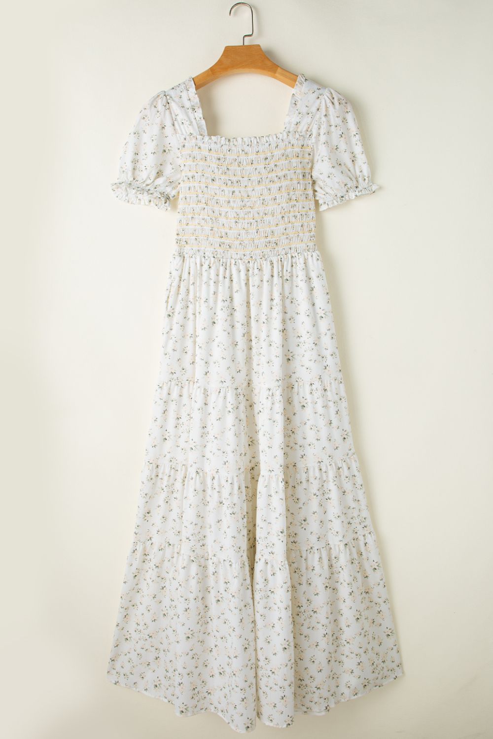 Floral Smocked Short Puff Sleeve Maxi Dress