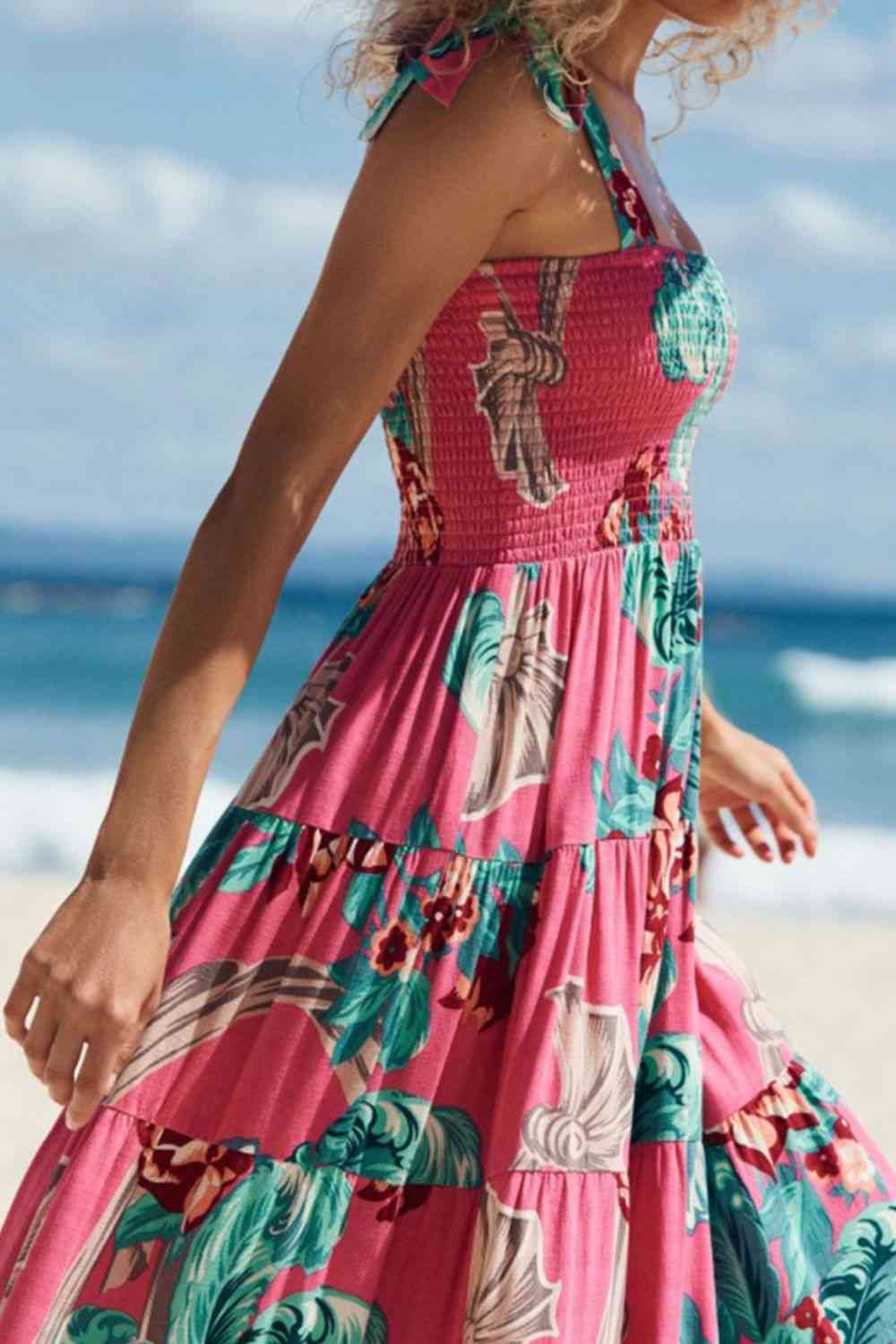 Floral Smocked Tie-Shoulder Tiered Dress