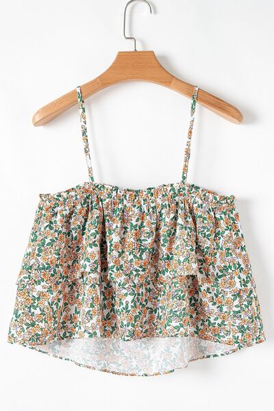 Floral Spaghetti Strap Ruffled Cami