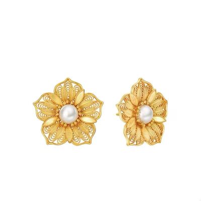 Floral Stud Earrings with Pearl Center