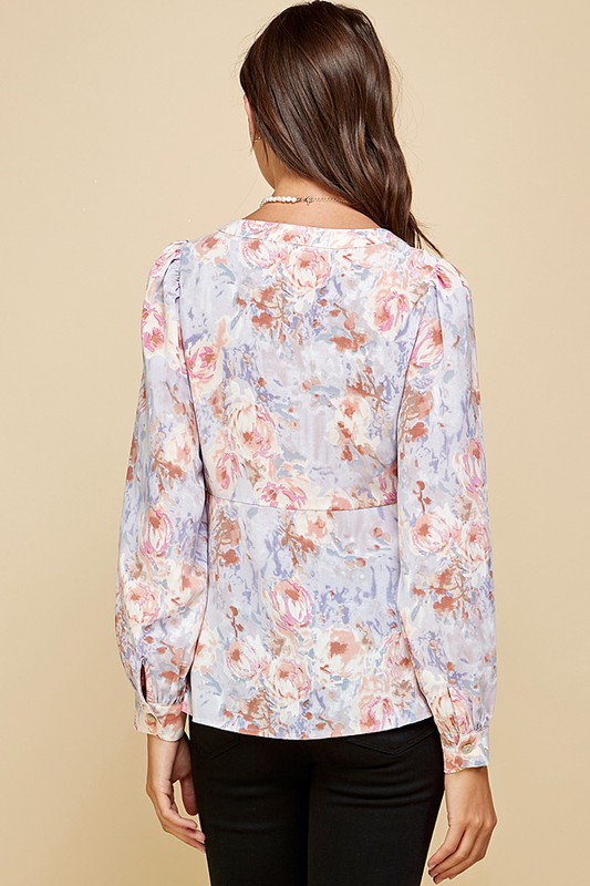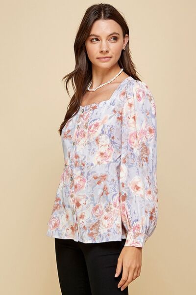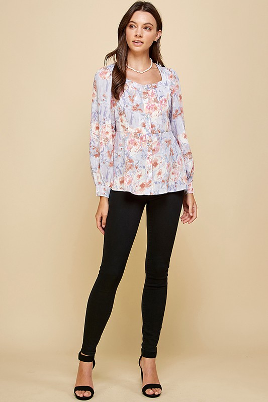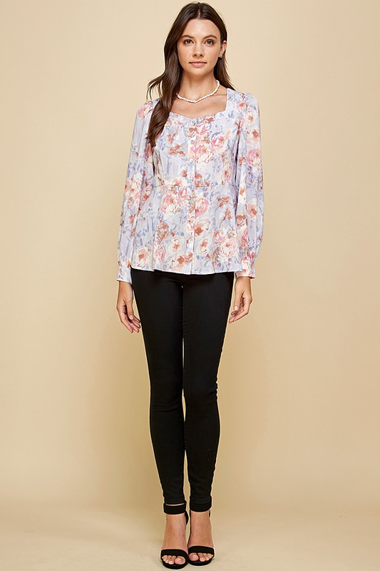 Floral Sweetheart Neckline Button Down Blouse