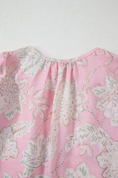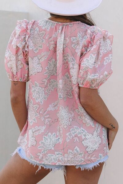 Floral Tie Neck Puff Sleeve Blouse