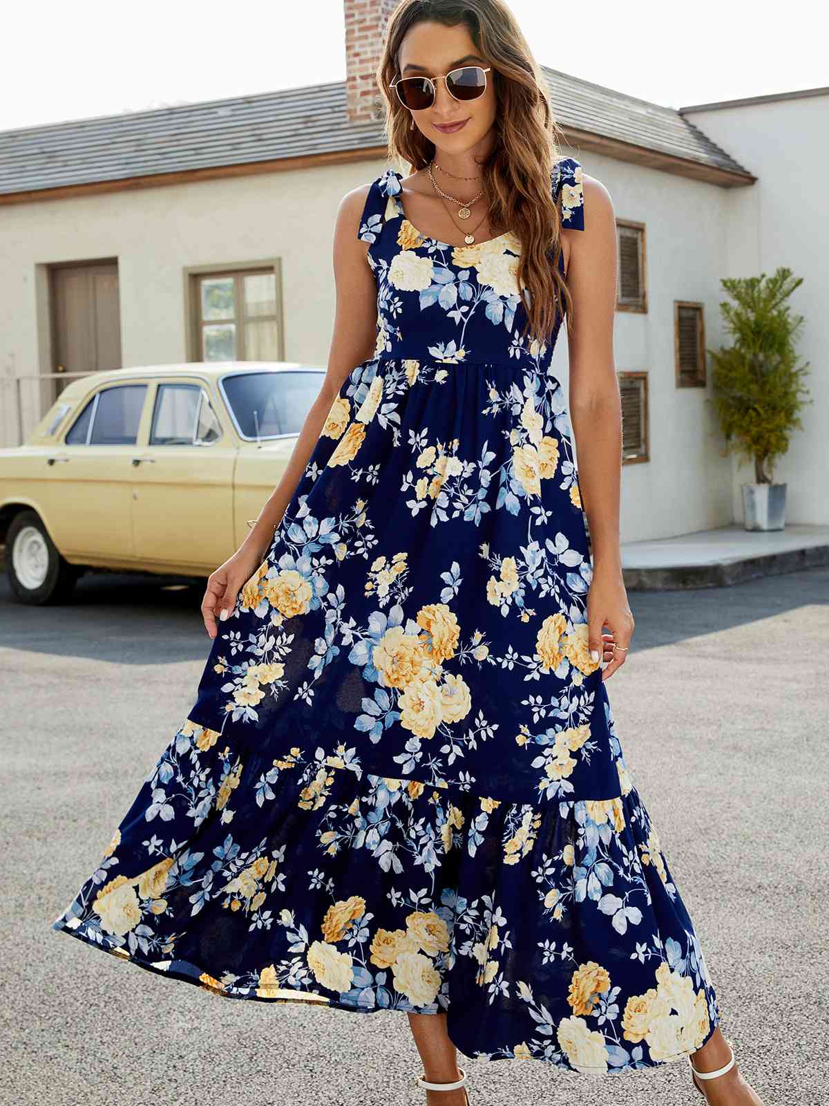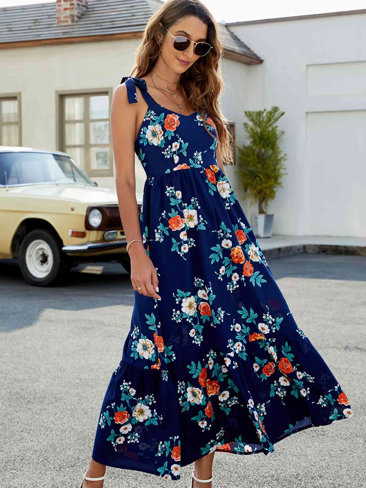 Floral Tie-Shoulder Sleeveless Dress