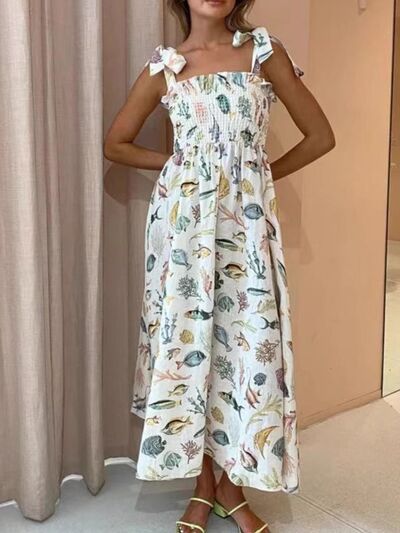 Floral Tie Shoulder Smocked Bodice Summer Dress