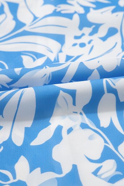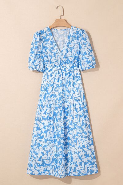 Floral V Neck Puff Short Sleeve Flowy Dress