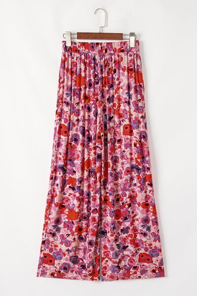 Floral Wide Leg Elastic High Waist Pants