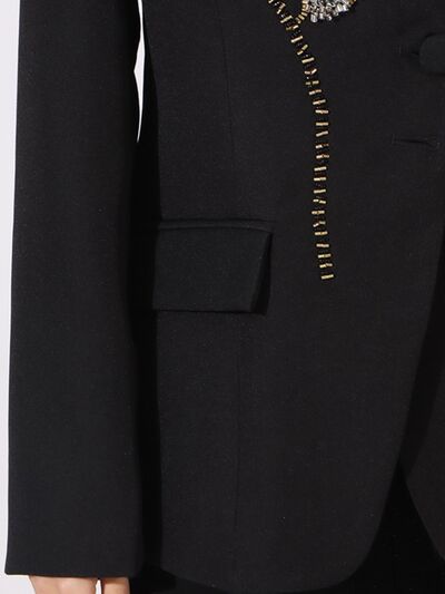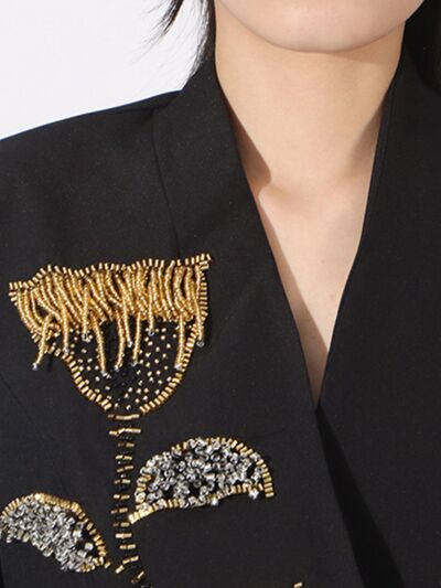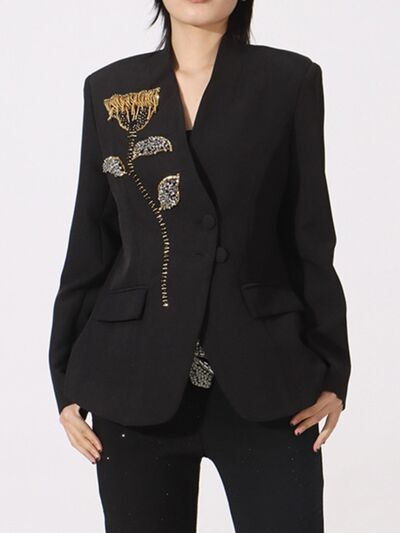 Flower Button Front Long Sleeve Blazer