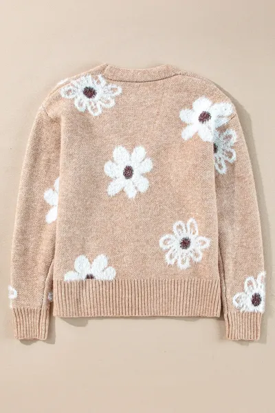 Flower Button Up Long Sleeve Cardigan