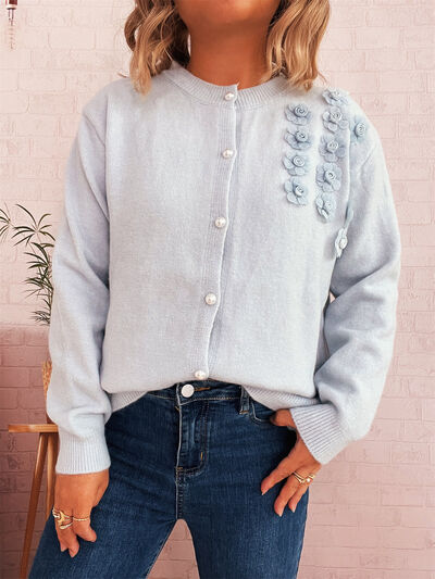 Flower Button Up Long Sleeve Cardigan