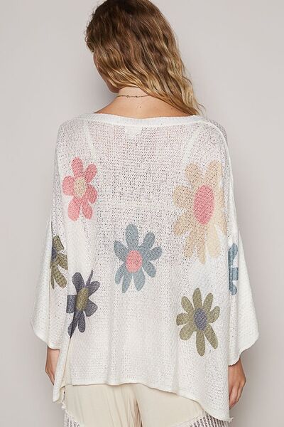 Flower Dropped Shoulder Long Sleeve Knit Top