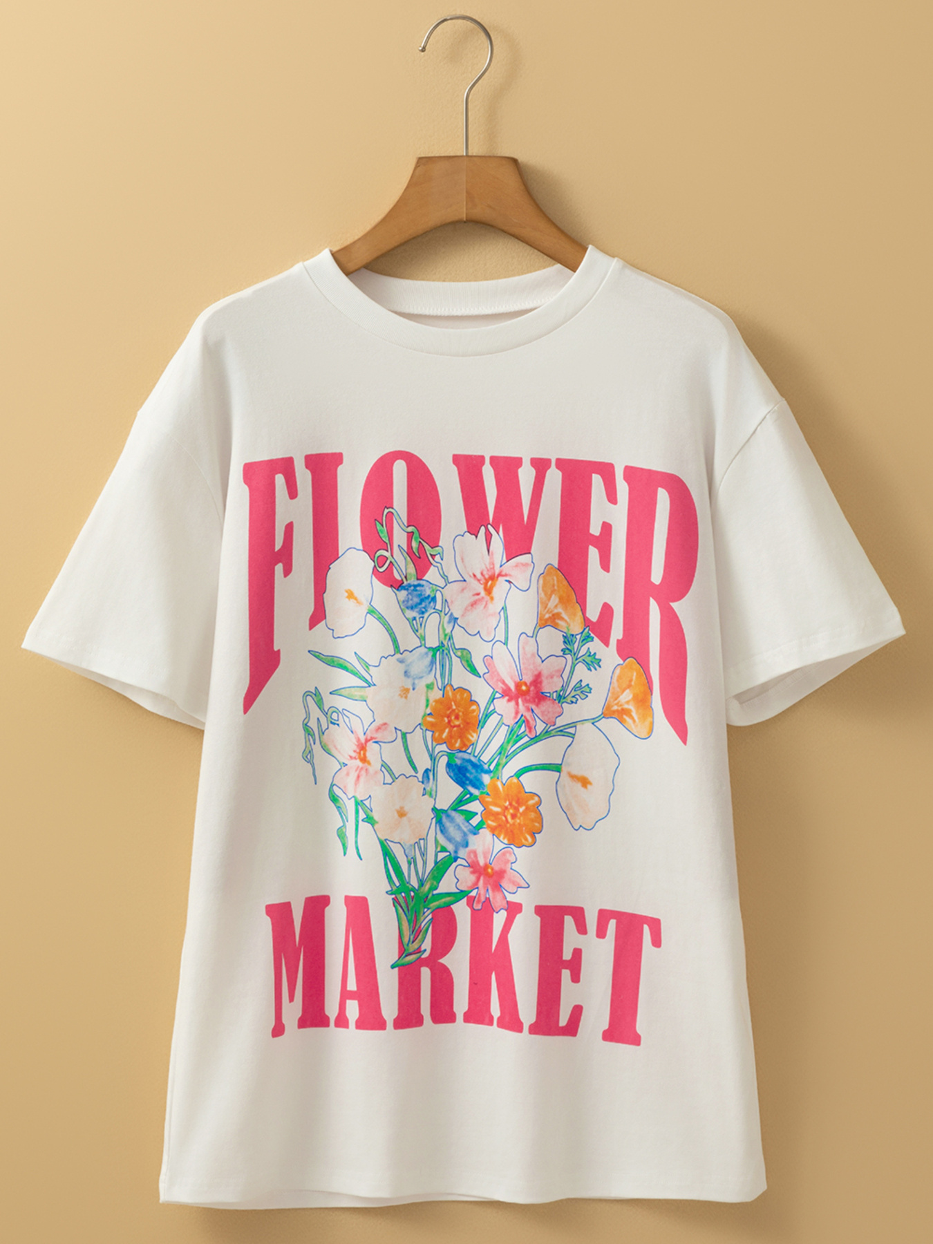 FLOWER MARKET Graphic Round Neck T Shirt