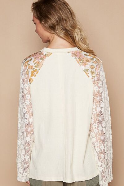 Flower Patch Lace Sleeve Knit Top