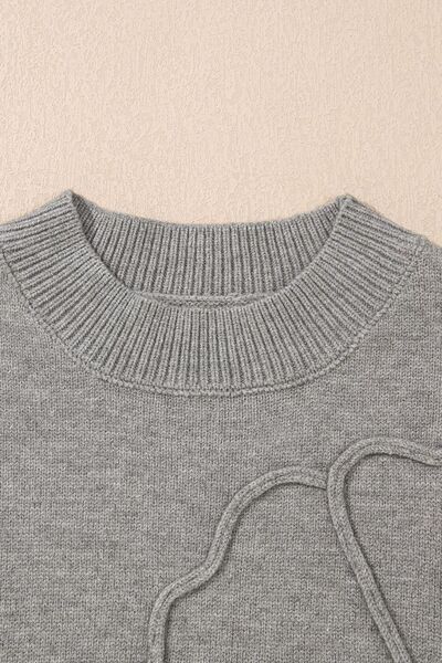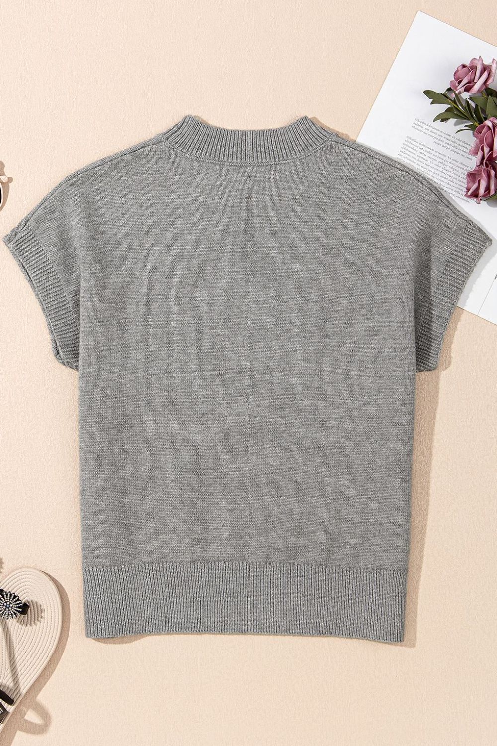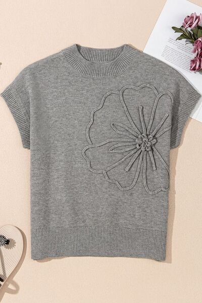 Flower Pattern Ribbed Trim Short Sleeve Boxy Sweater