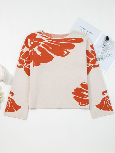 Flower Pattern Wide Sleeve Baggy Sweater