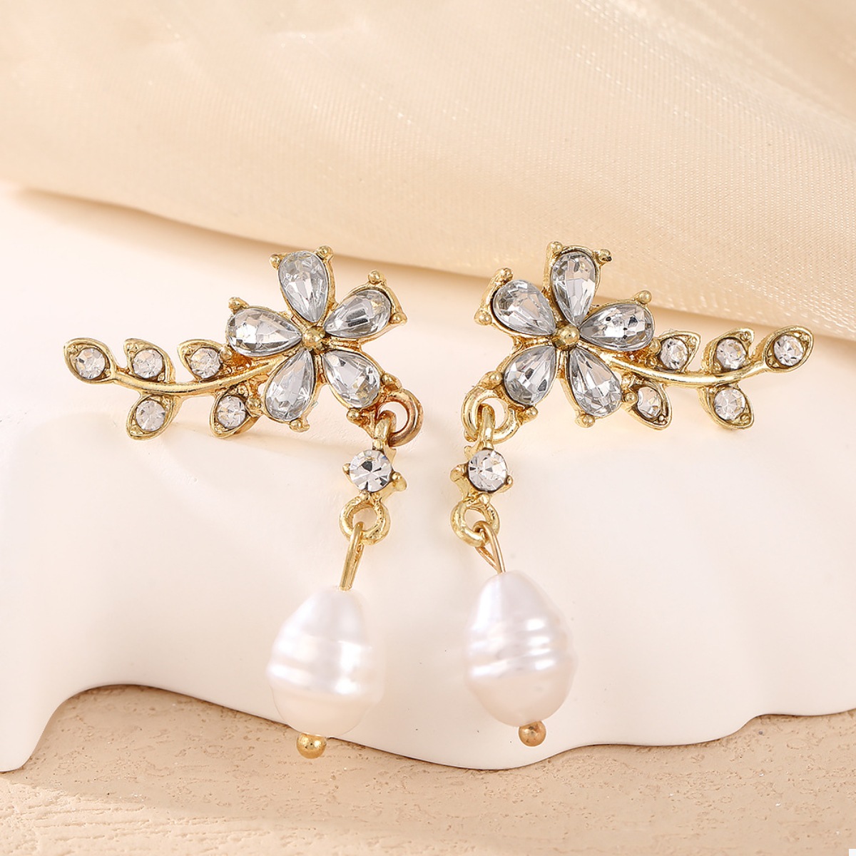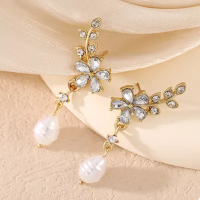 - Material:Synthetic Pearl,18K Gold-Plated,Alloy,Rhinestone