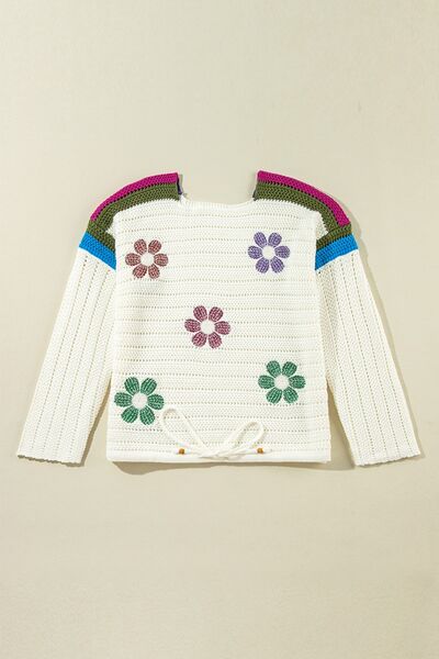 Flower Round Neck Long Sleeve Sweater