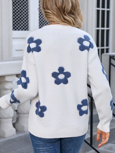Flower Round Neck Long Sleeve Sweater
