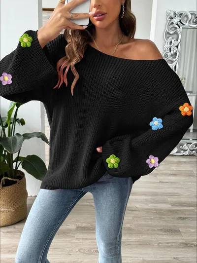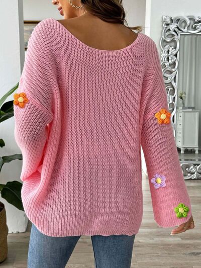 Flower Round Neck Long Sleeve Sweater