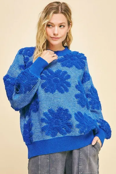 Flower Texture Round Neck Dropped Shoulder Sweater