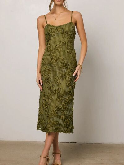 Flower Textured Midi Cami Dress
