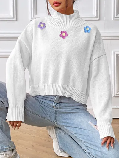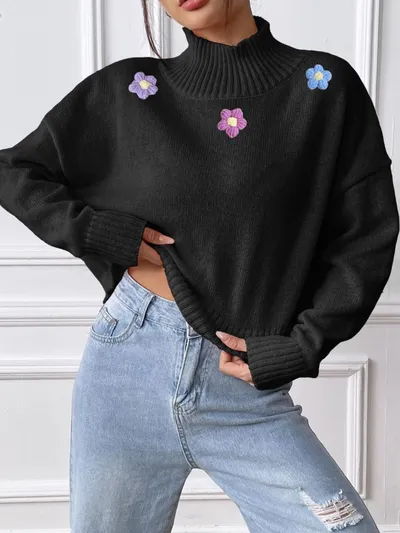 Flower Turtleneck Long Sleeve Sweater