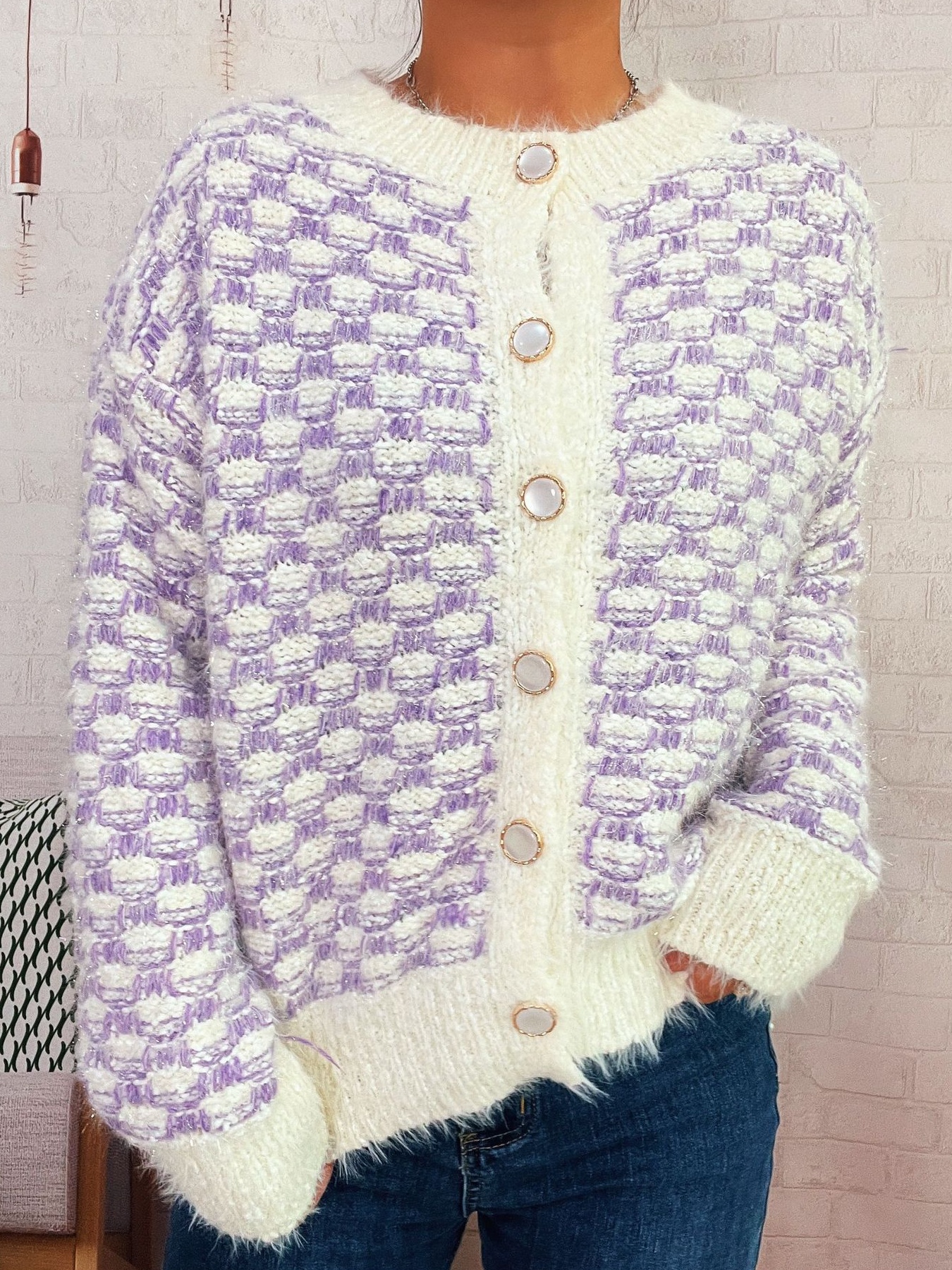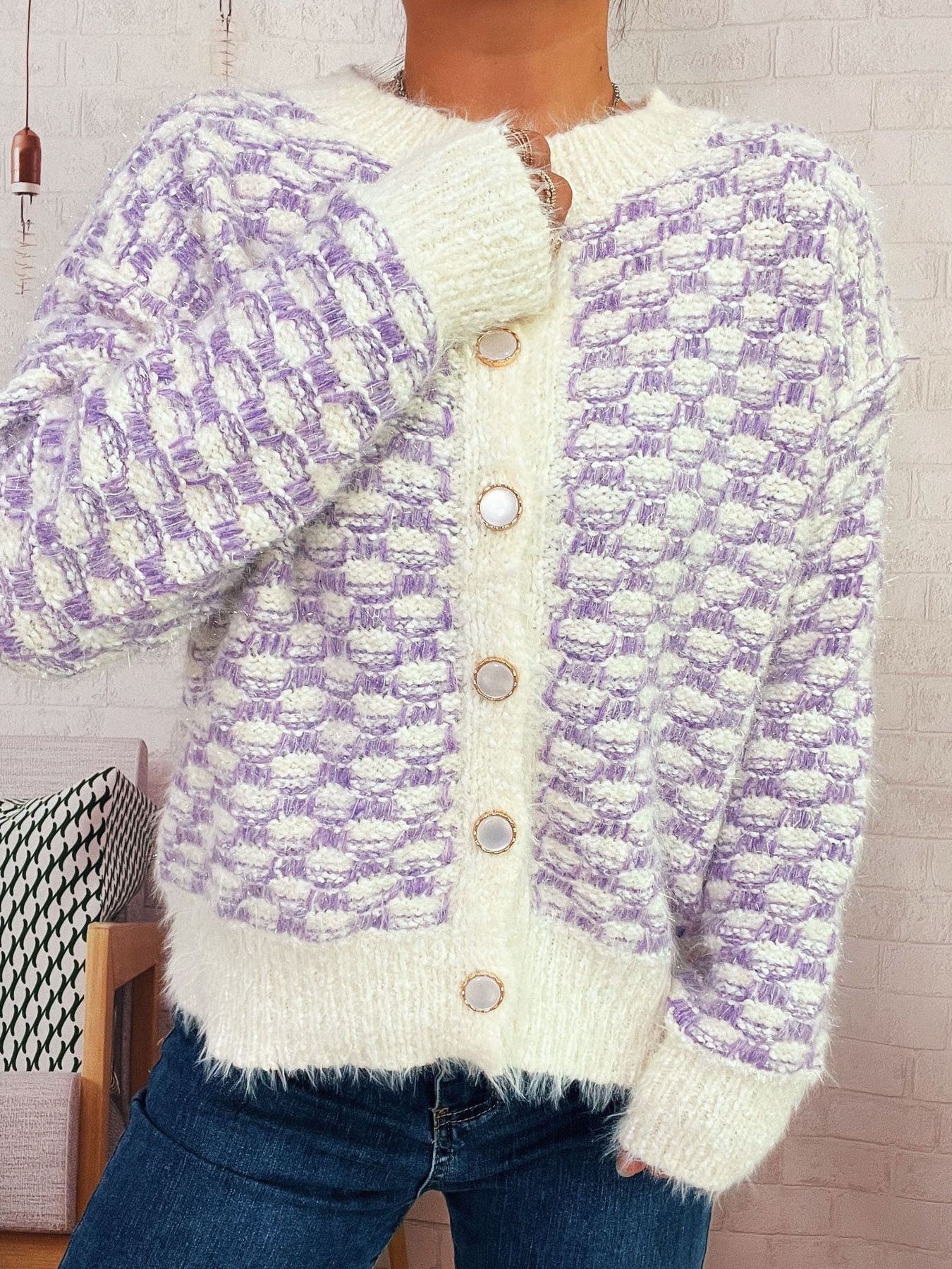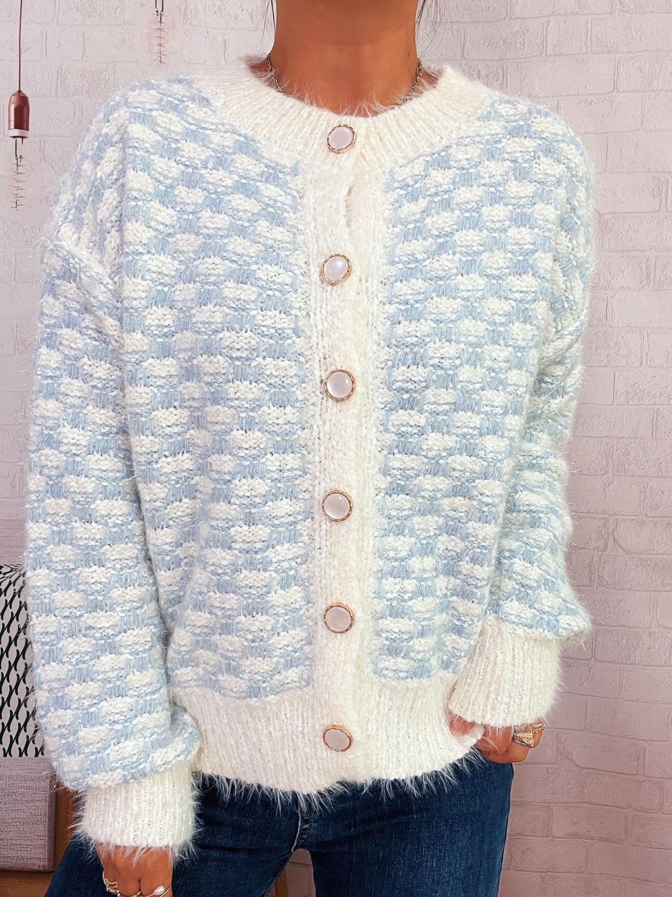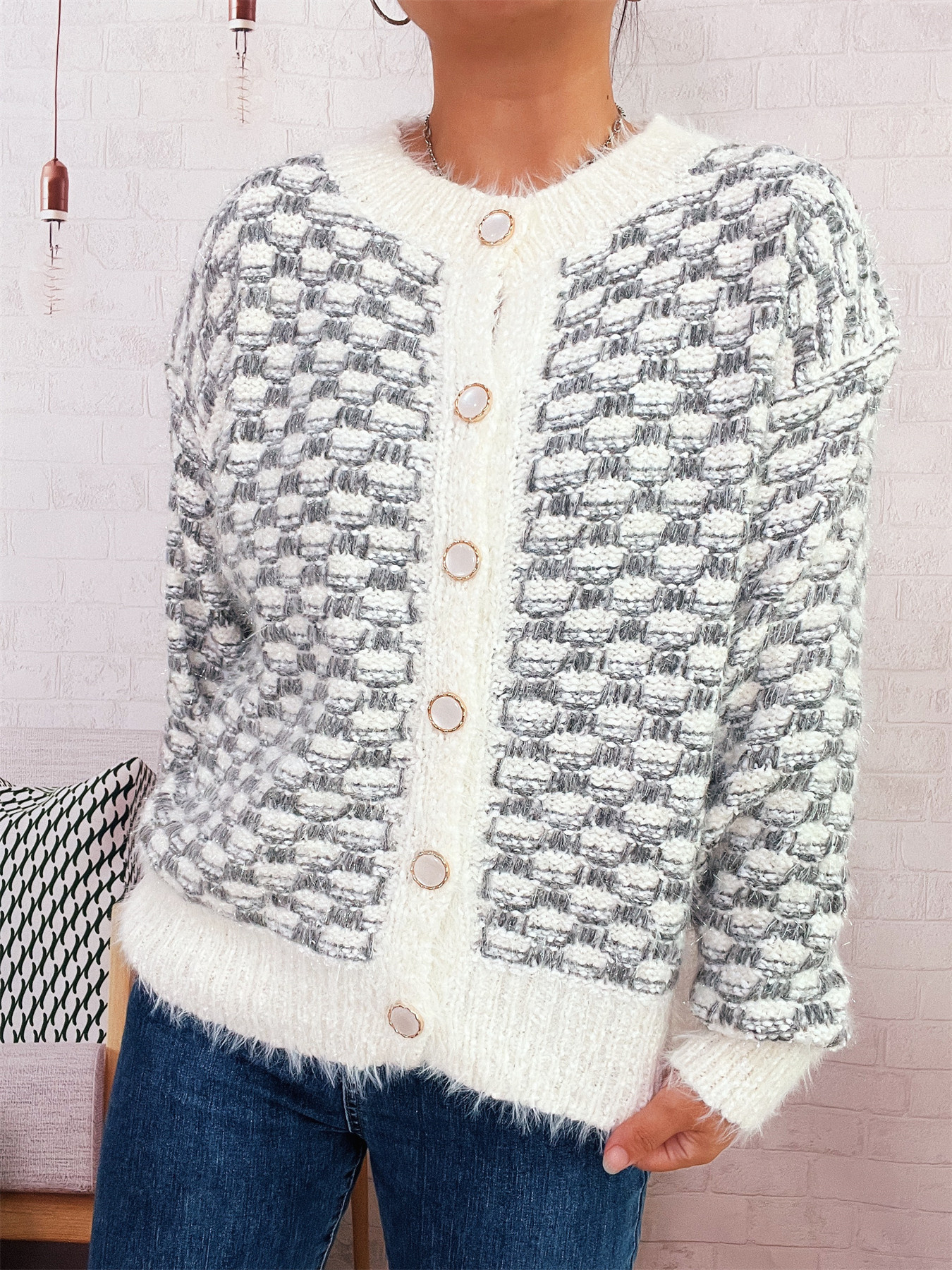 Fluffy Textured Button-Up Cardigan