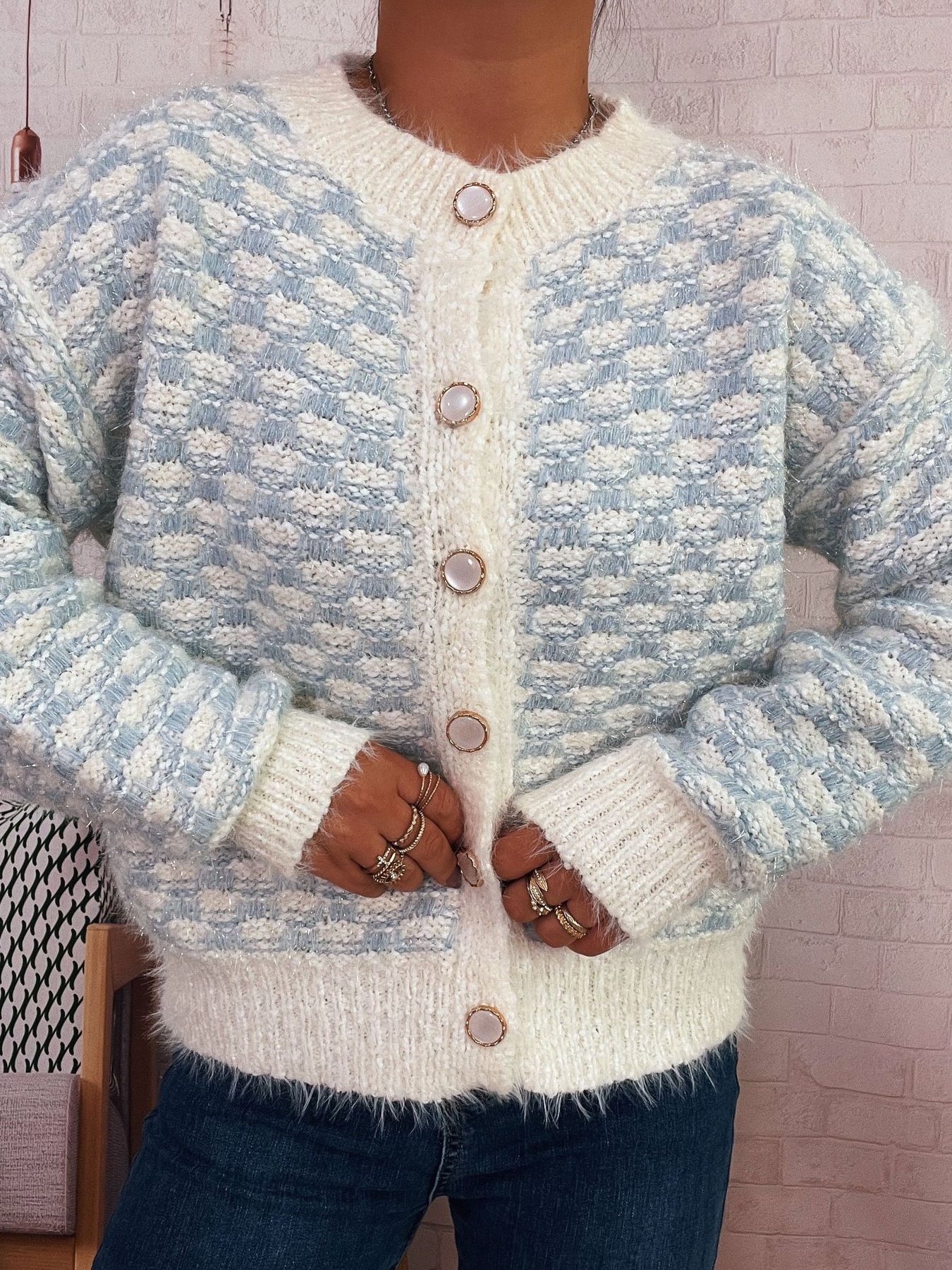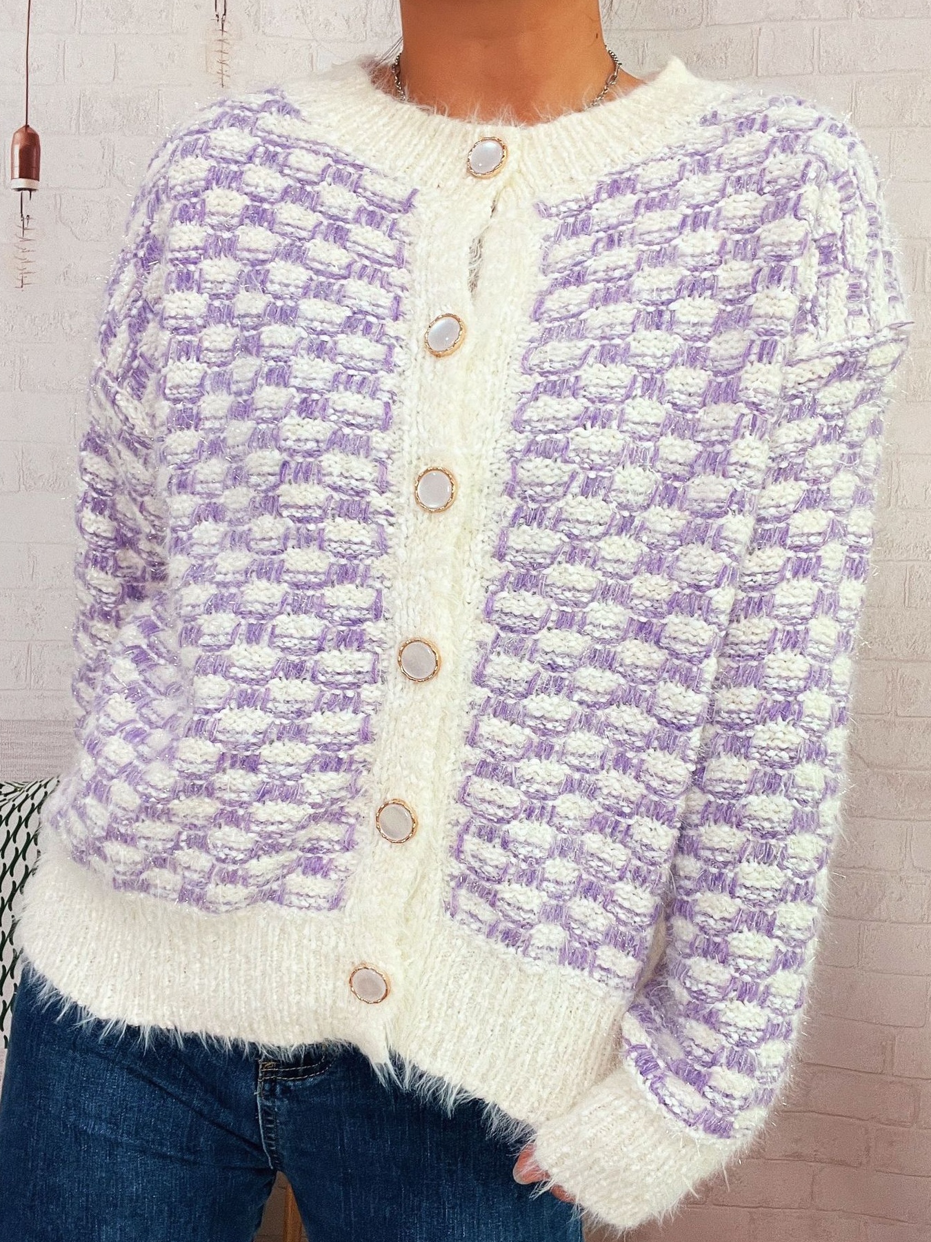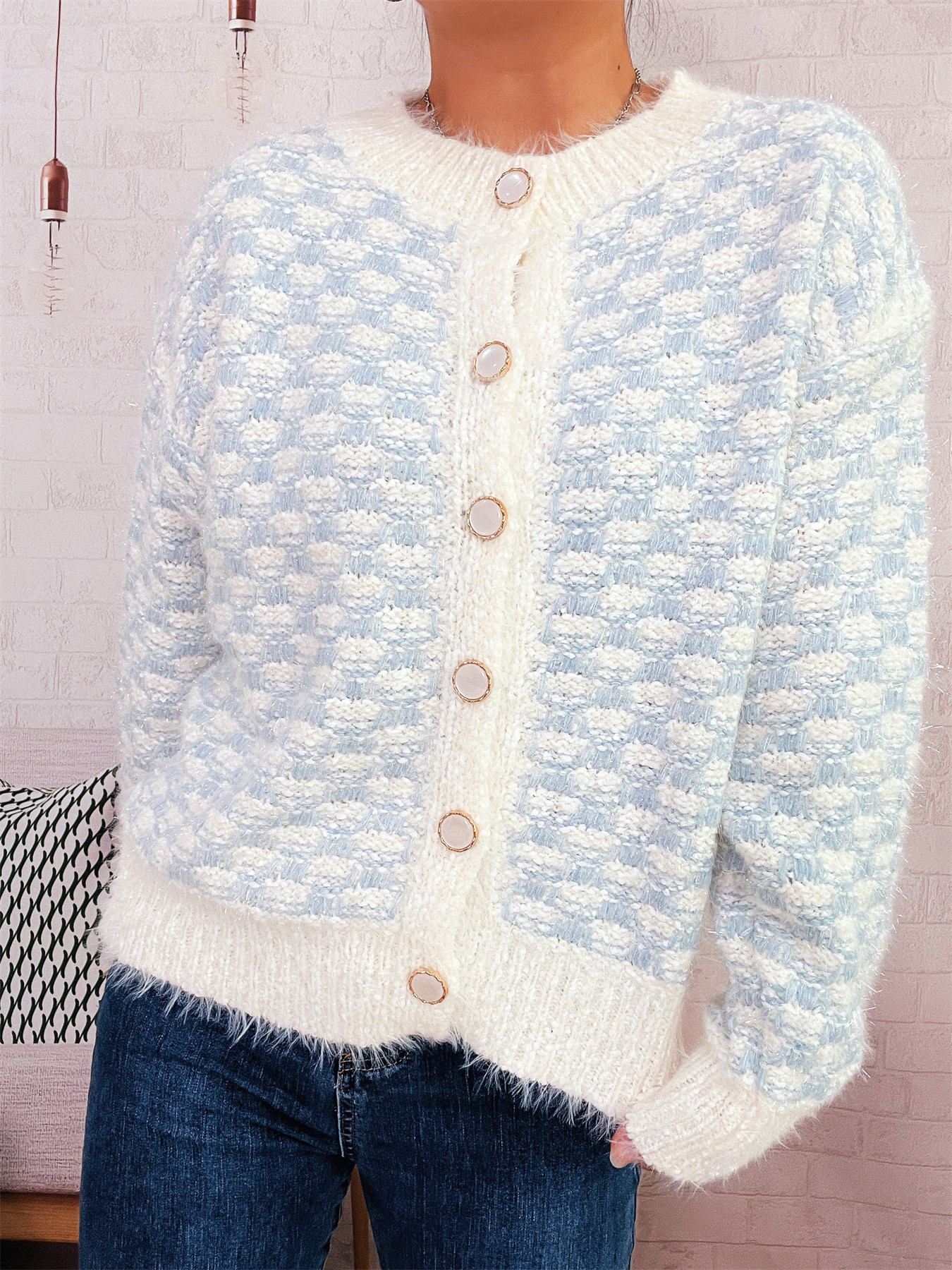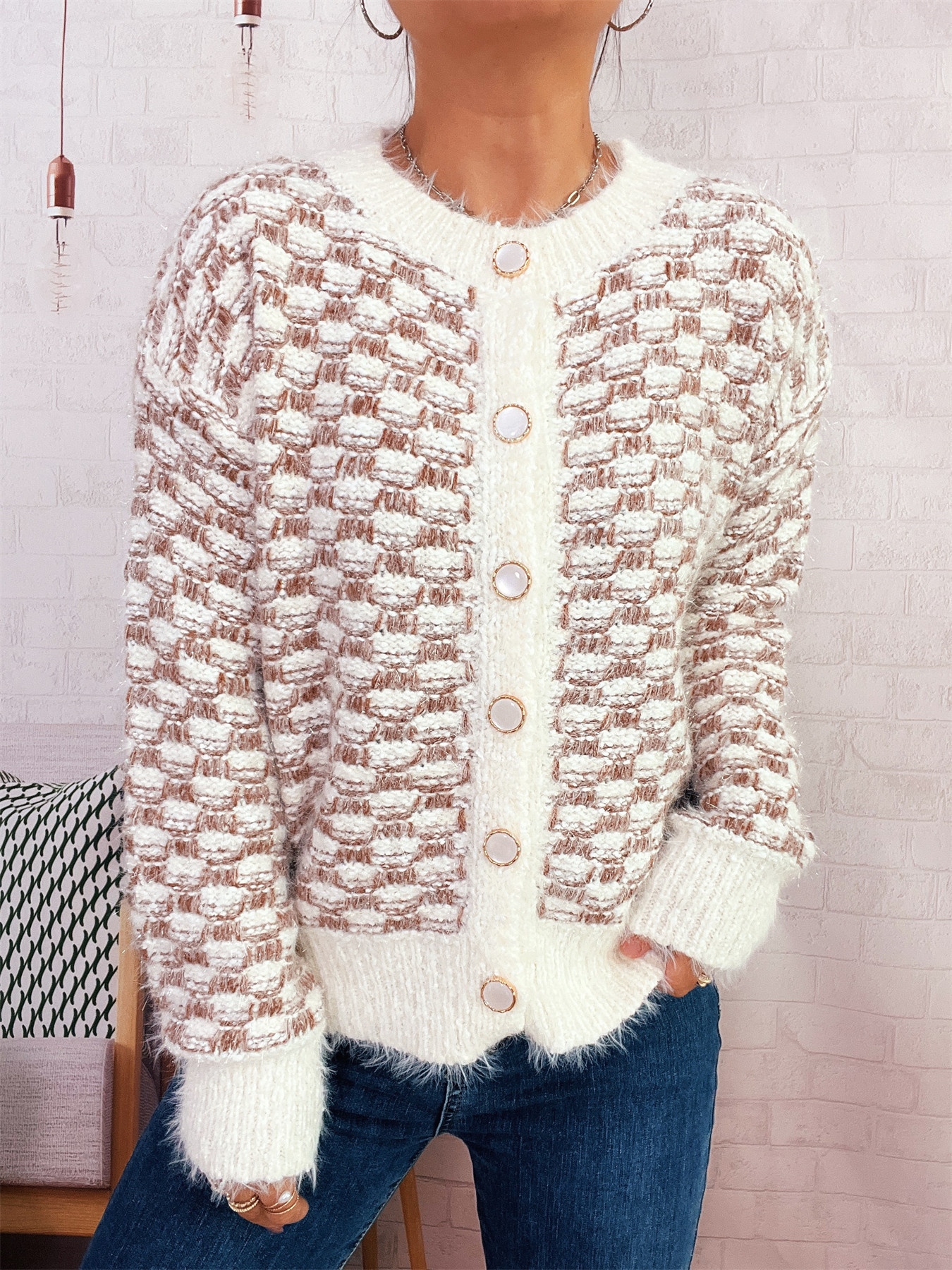Fluffy Textured Button-Up Cardigan