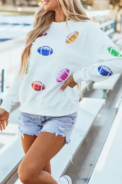 Football Round Neck Long Sleeve Sweatshirt