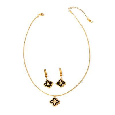 Four-Leaf Clover Pendant Necklace and Earrings Jewelry Set