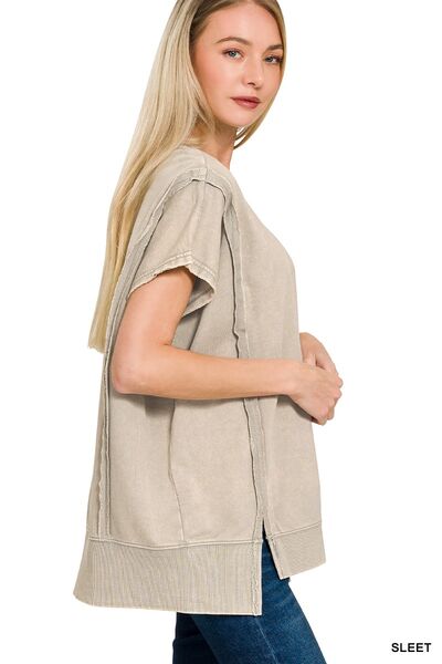 French Terry Acid Washed Hi-low Top