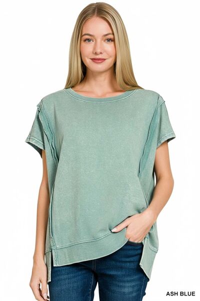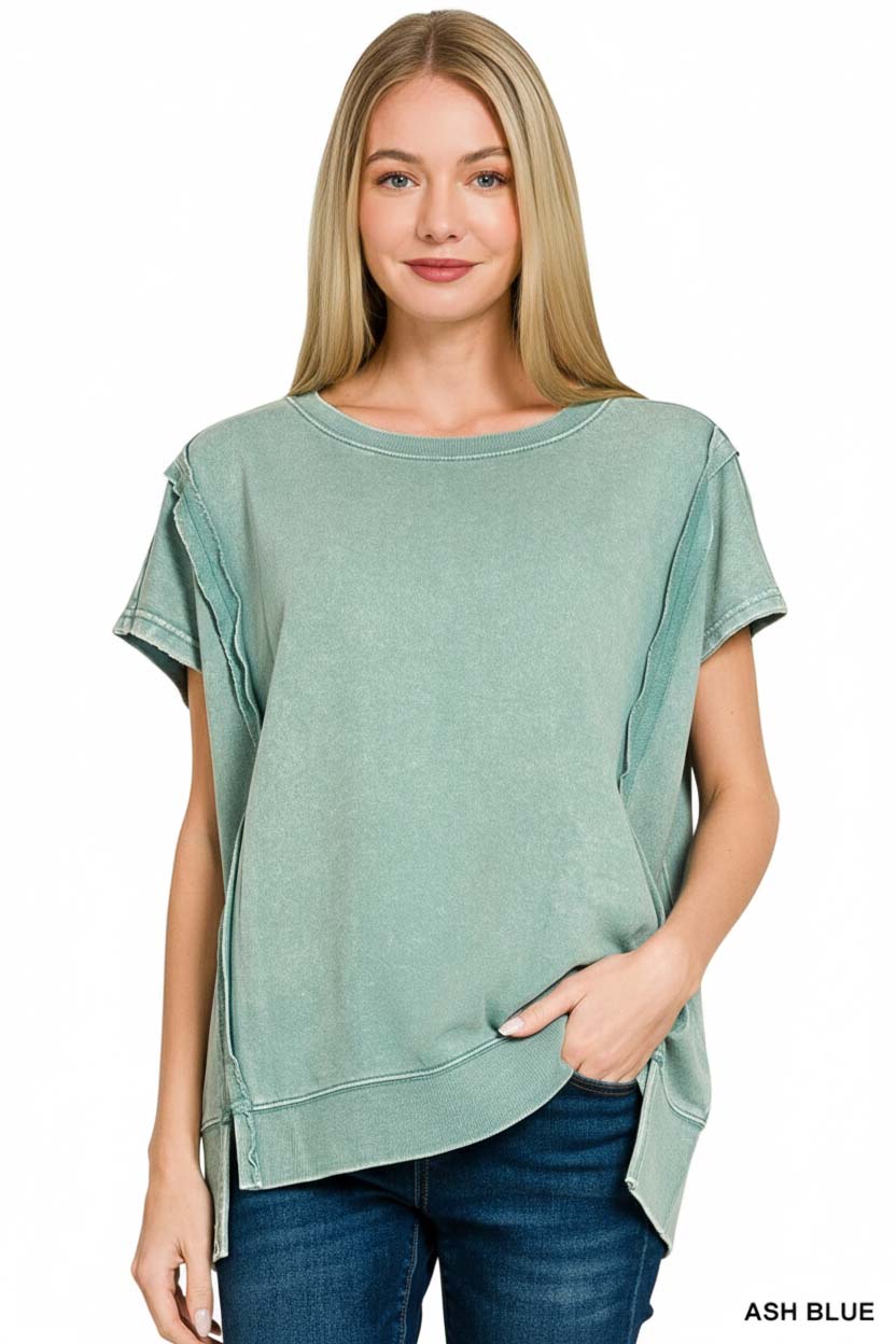 French Terry Acid Washed Hi-low Top