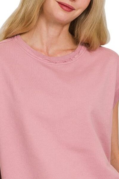 French Terry Round Neck Cap Sleeve T-Shirt