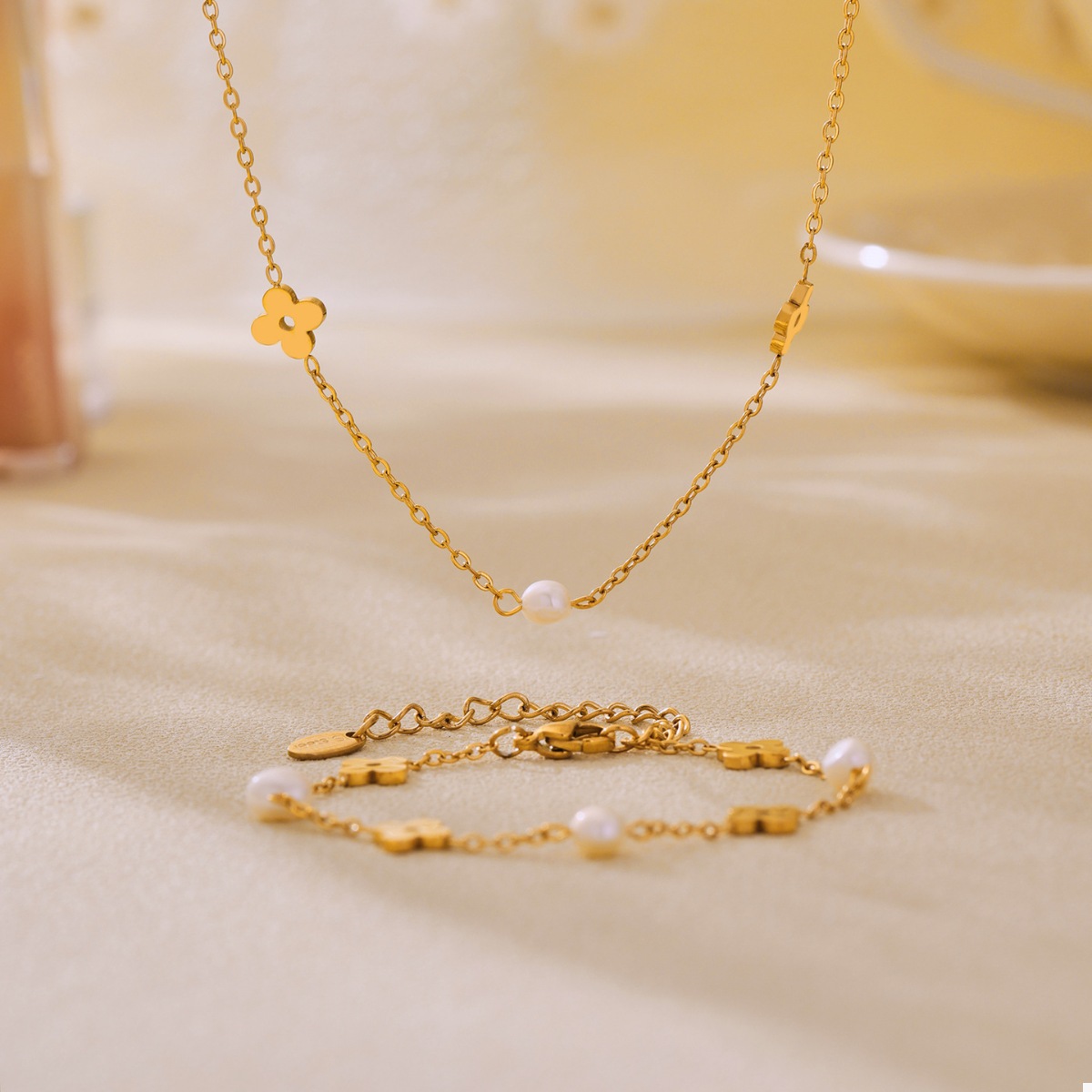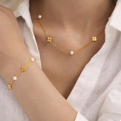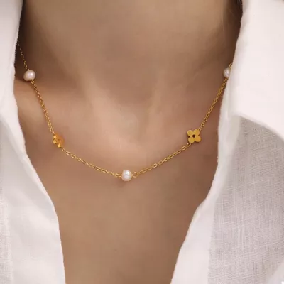 Freshwater Pearl 18K Gold-Plated Flower Necklace