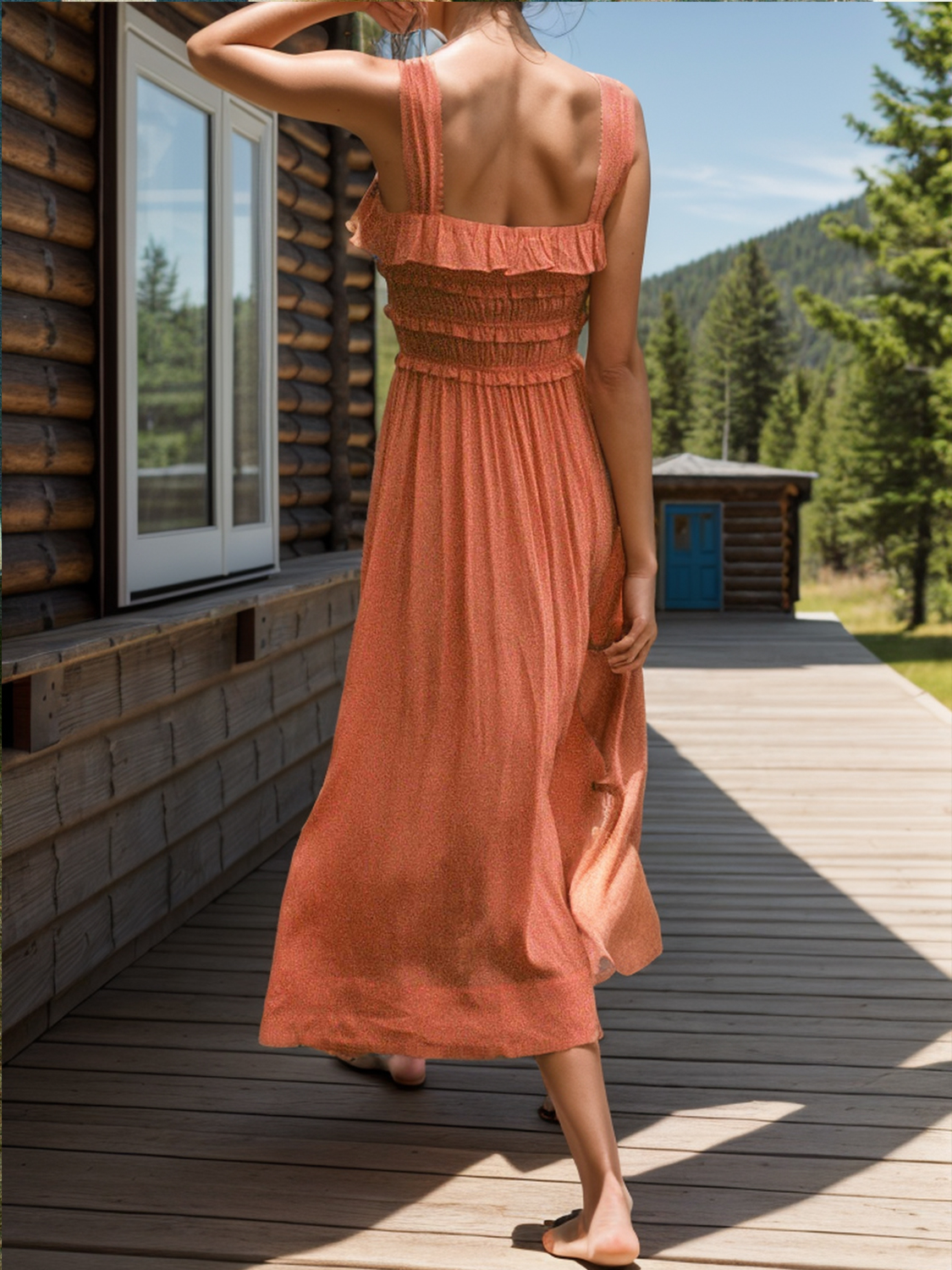 Frill Square Neck Wide Strap Dress