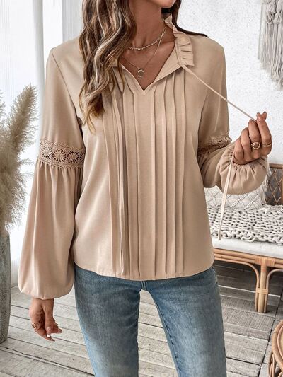 Frill Tie Neck Long Sleeve Blouse