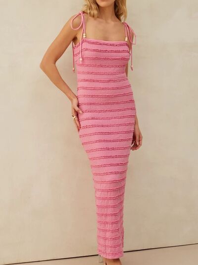 Frill Tie-Shoulder Maxi Dress
